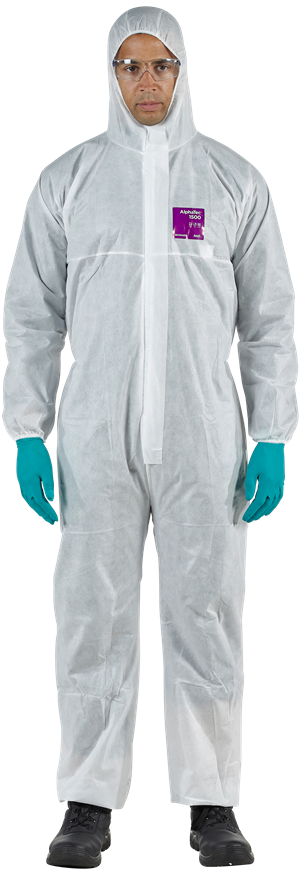 Gracias a su barrera SMS, el traje de protección AlphaTec® 1500 Bound – Modelo 138 protege contra salpicaduras de líquidos y partículas peligrosas*, protegiendo a los usuarios de las fibras de amianto, como el crisotilo, y filtrando el 100% de las partículas de más de 3 micras.