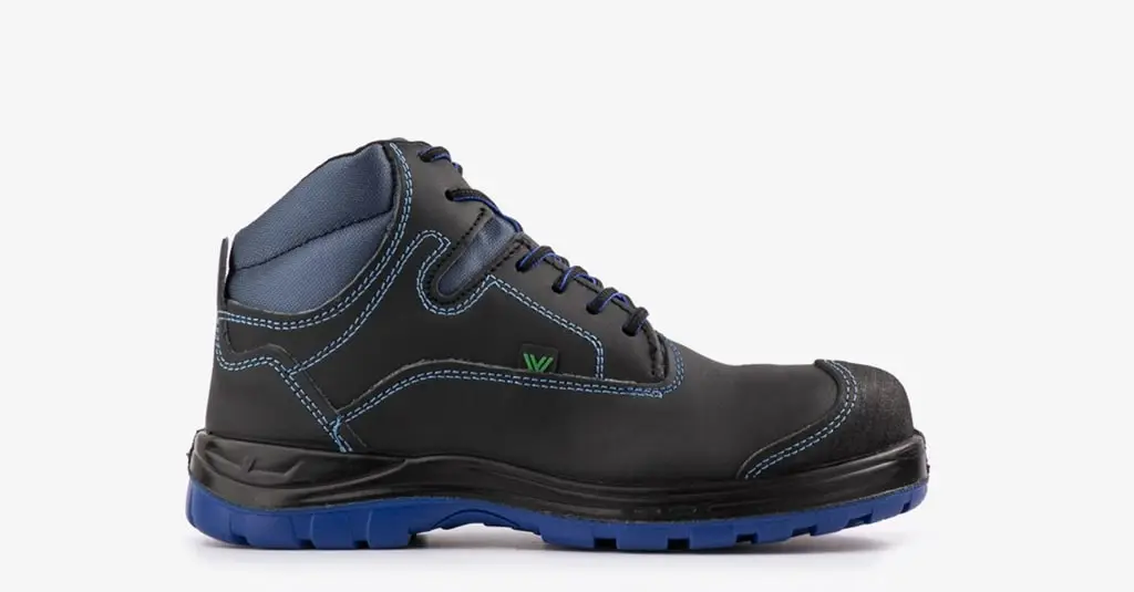 Borceguí Blu Negro es calzado de seguridad con una altura aproximada de 17 cm; hecho con cuero de ganado vacuno liso y una suela inyectada de PU a un patín de hule con fórmula de tetrapolímeros. Libre de partes metálicas.
