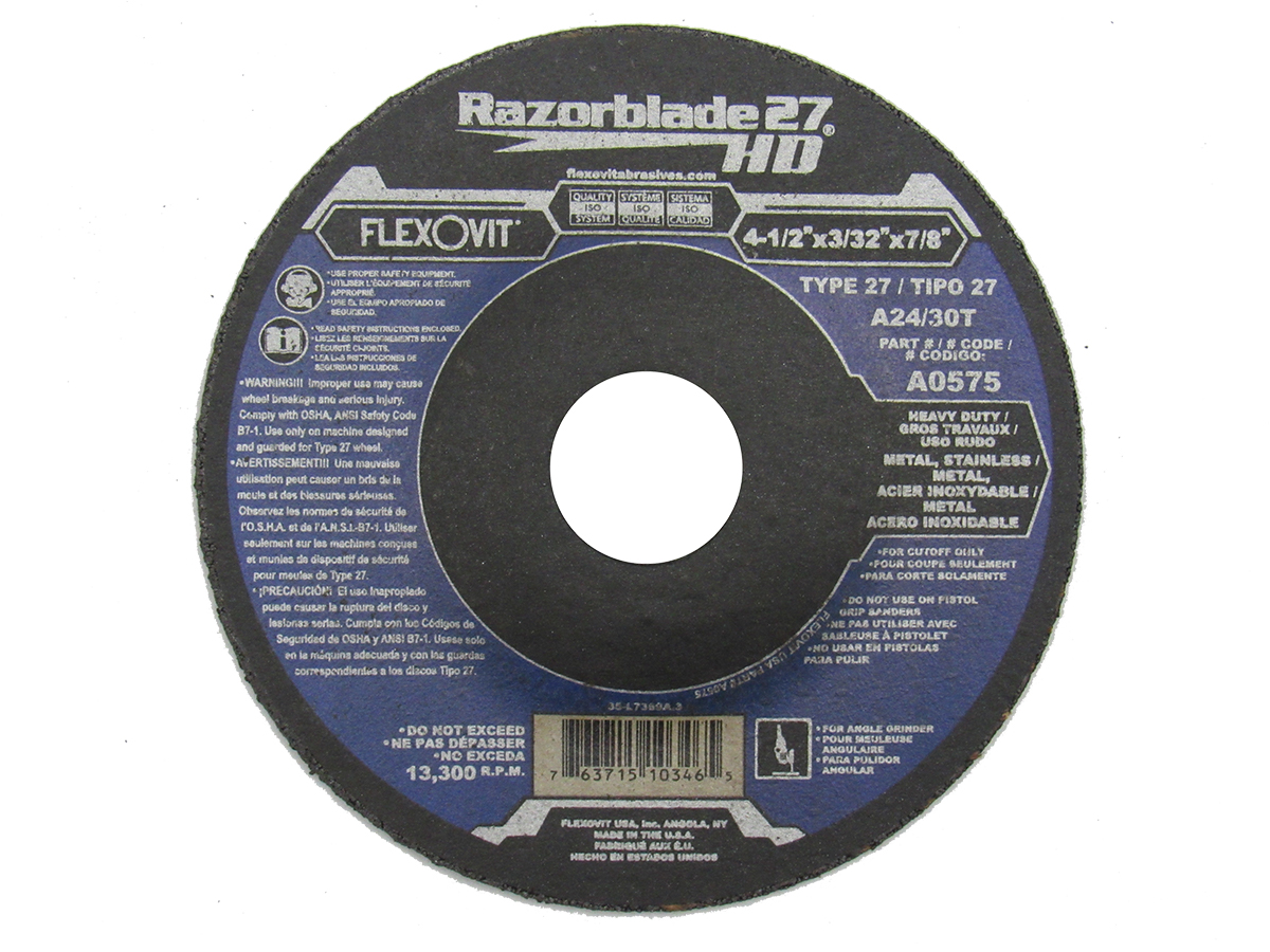El disco RAZORBLADE 27 HD de 3/32″ de espesor resistirá el desgaste en aplicaciones exigentes, incluyendo chapa metálica y otros trabajos que requieren un afilado intenso de la pieza.