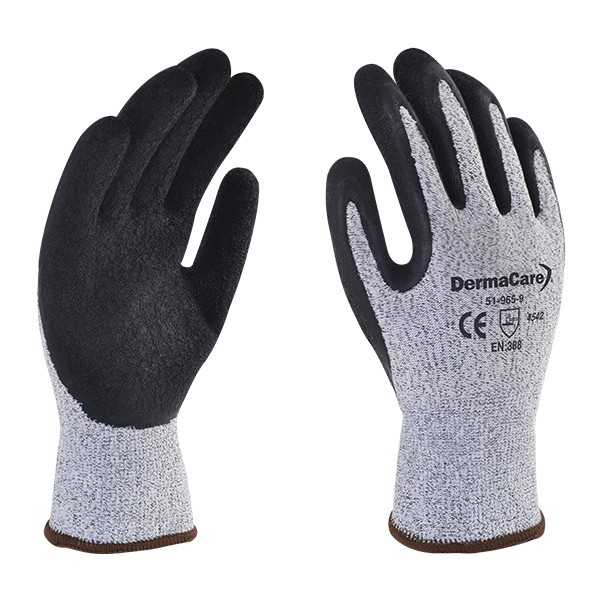 Protección nivel 5 al corte, fabricado con látex negro en palma, esto ofrece excelente agarre procesos secos o humedos, es cómodo y muy flexible, excelente opción para trabajos donde se requiera manipular pequeñas piezas.