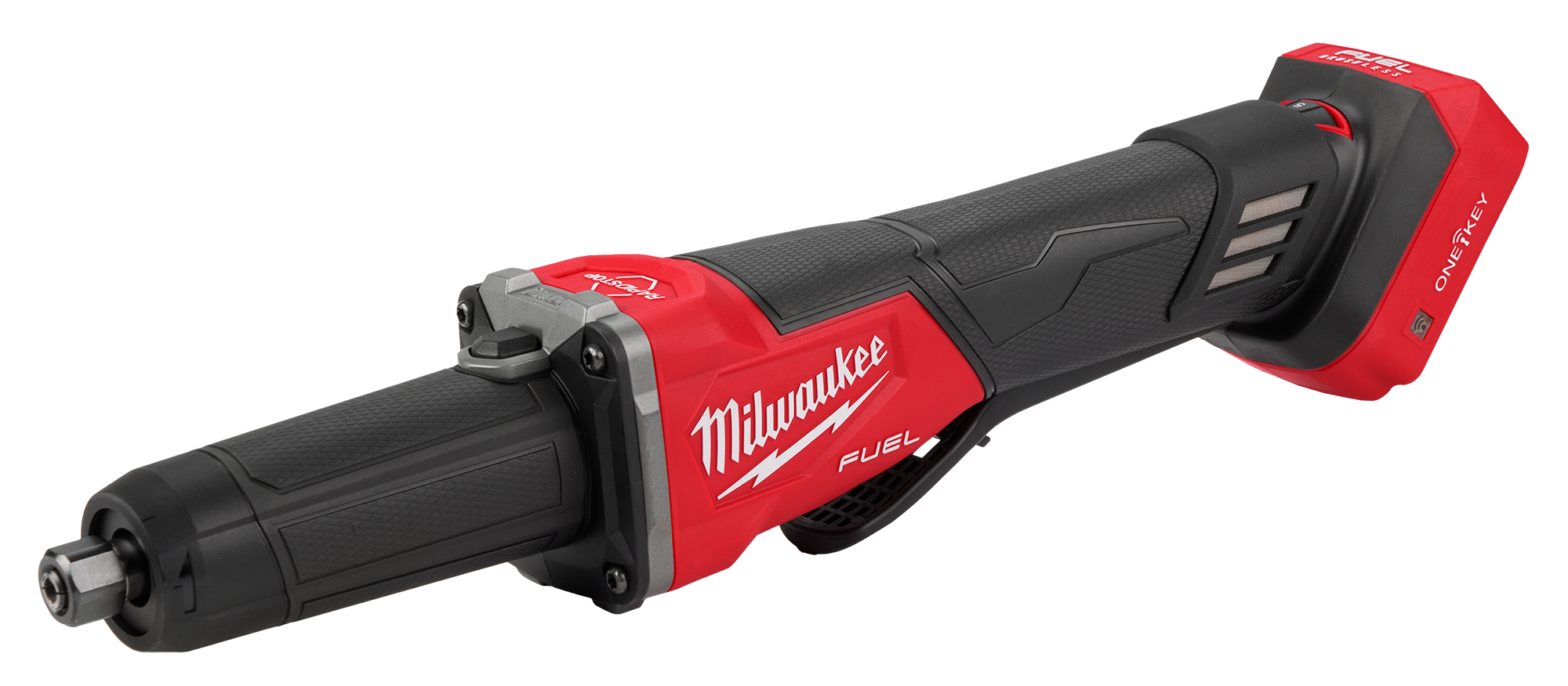 Rectificadora de troqueles con freno de velocidad variable M18 FUEL™ con interruptor de paleta y ONE-KEY™ ofrece el tiempo de operación que exigen los usuarios, con la capacidad de quitar rebabas de hasta 35 tuberías con (1) batería M18™ 5.0ah XC